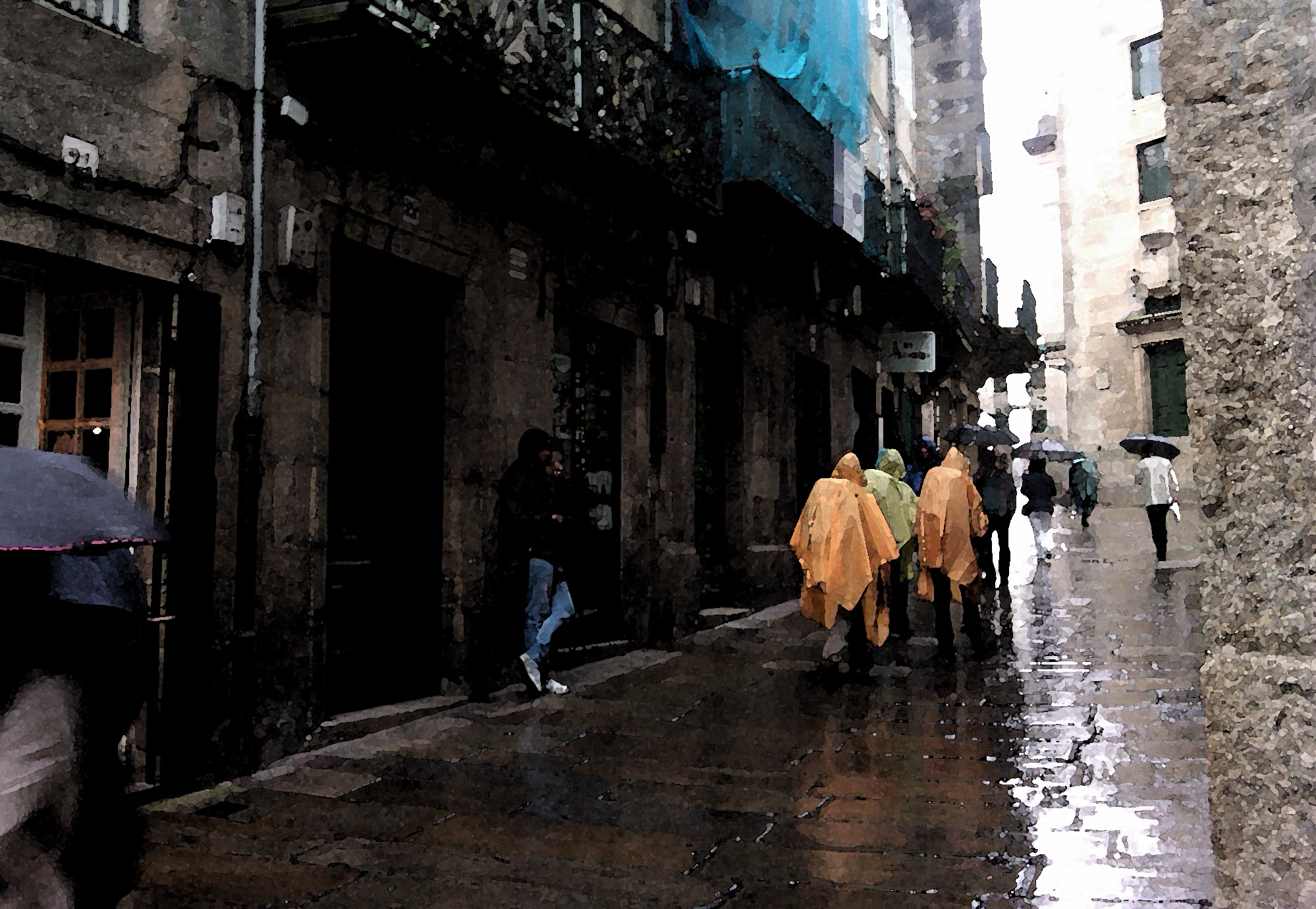 pese á chuvia, seguen chegando peregrinos a Compostela.